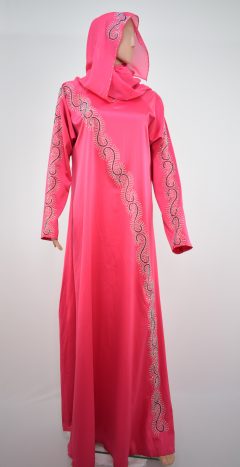 Beautiful Pink fabric Designer Abaya with Crystal Embroidery.