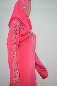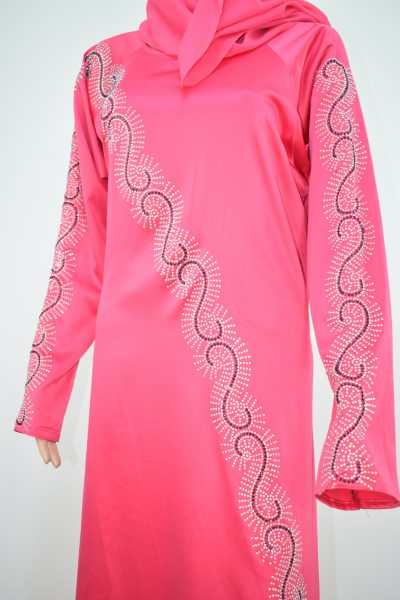 Beautiful Pink fabric Designer Abaya with Crystal Embroidery.